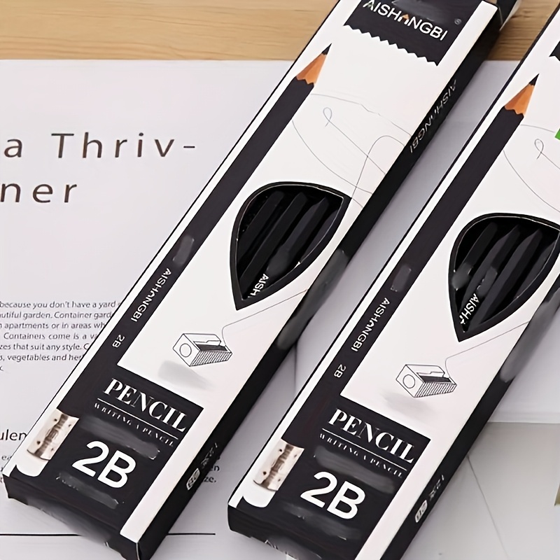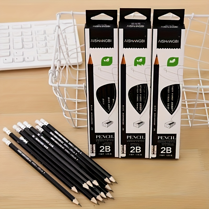 12pcs 2B Black Pencil Set with Rubber Writing Tool Sketch Pencil, Hand Drawing Tool 2B Exam Pen Art Supplies Pen Stationery Boutique Writing Tool, Suitable for Writing, Student Drawing, Sketching and Drawing, Suitable for School Edition Office Suppli